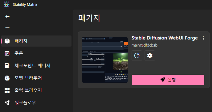 모델을 추가했다면 Stability Matrix로 돌아가 패키지를 재실행 해줍니다.