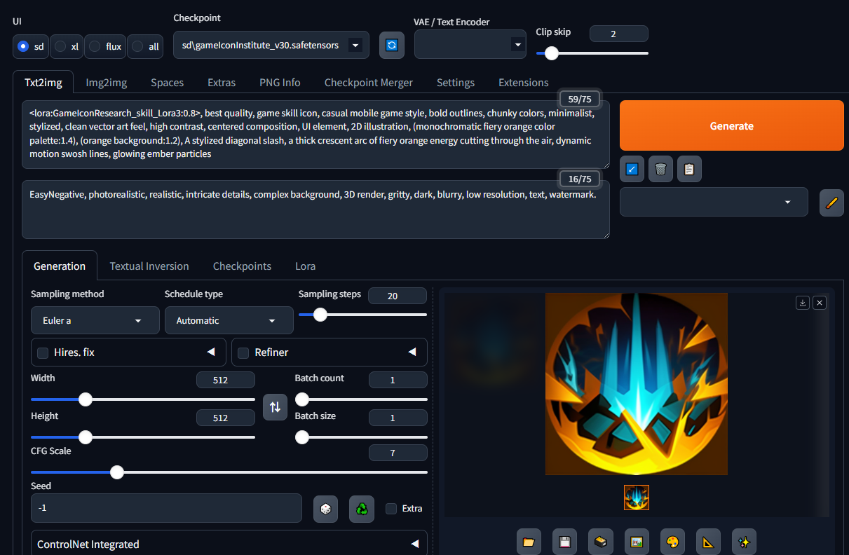 - gameIconInstitute_v30.safetensors : StableDiffusion 폴더