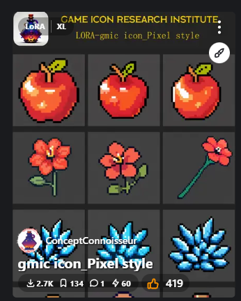 이전 포스터에서 픽셀 사과를 제작해봤었죠. 메인 프롬프트를 살펴보시면 <lora:~~ :0.9> 라는 태그가 보일겁니다. 이 태그는 픽셀 화풍을 나타내는 가중치입니다. 만약 LoRA를 정의하지 않는다면 어떻게 될까요?