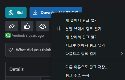 ※ 다운로드 URL 얻는 법 : Civitai 사이트에서 Download 버튼 우클릭 후 링크 주소 복사 클릭