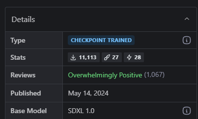 Civitai 사이트에서 다운로드 받은 Checkpoint 모델이라면 사이트에서 Base Model을 확인할 수 있습니다.